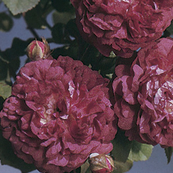 One of the finest old roses with rich deep purple blooms with reflexing petals. Floriferous. Very fragrant. Responds to hard pruning, thinning and feeding. Dark green foliage and few thorns. c.1847
