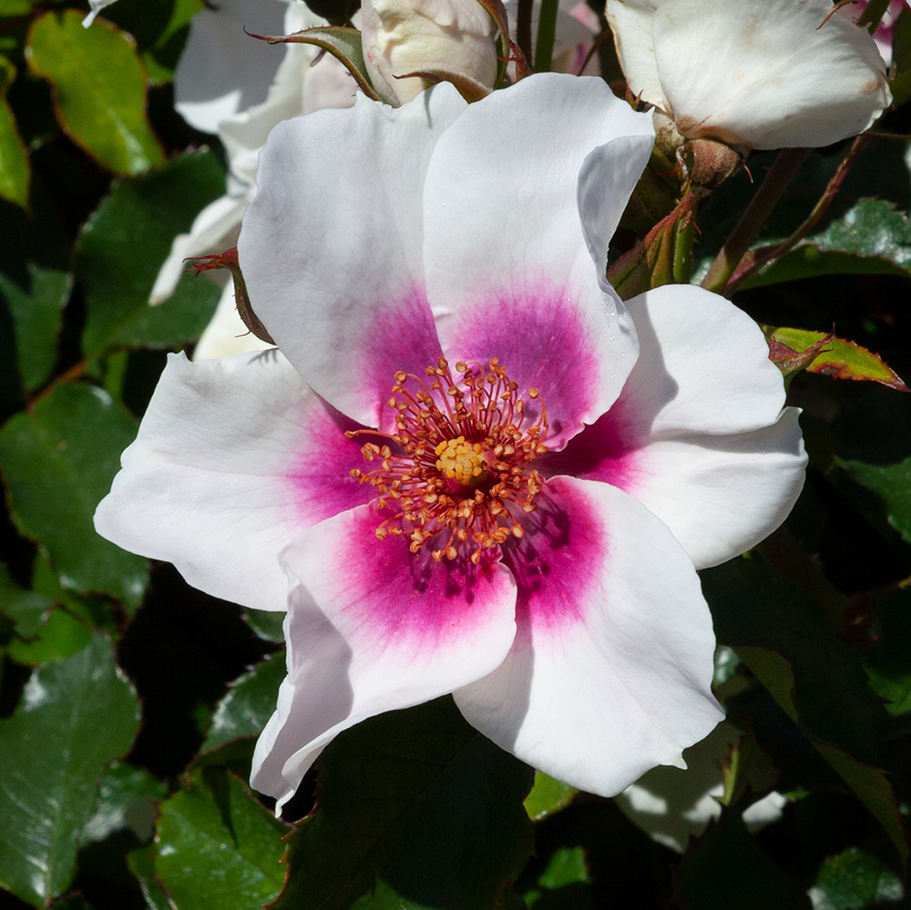 Eye catching in every way, this award winning rose makes a spectacular display. Bushy growing, easy care plant, free and repeat blooming. Dark glossy foliage.