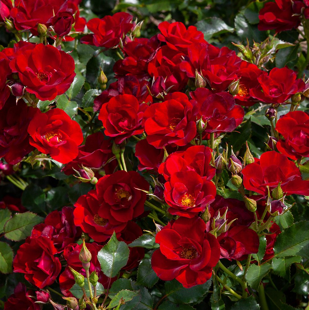 Continuously flowering clusters of true red flowers, dancing above lush dense foliage. This multi award winning shrublet ticks all the boxes for no fuss, easy care gardening! Can be grown in any garden situation. Fantastic for group planting, landscaping and/or pots with a compact growth habit. Bred by renowned Kordes Rosen.