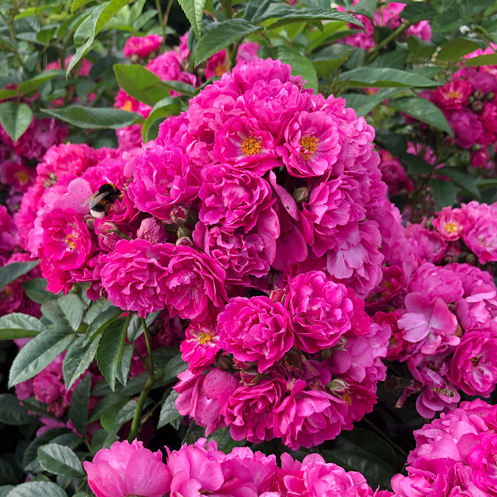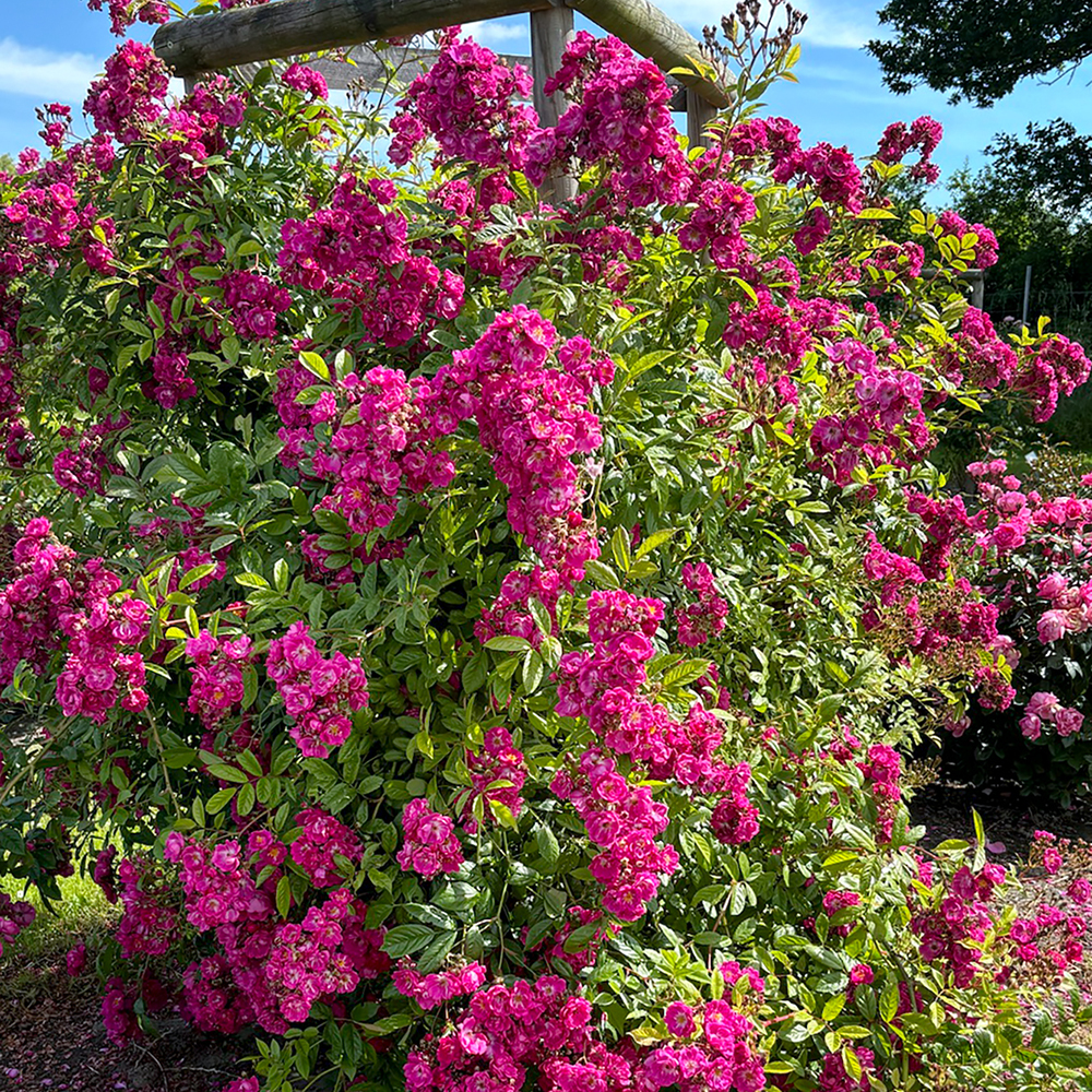 Powerfully perfumed petals pack a punch with intense pink-violet clusters, re-blooming on easy to shape, bushy branches. This supremely healthy plant deserves a spot in any garden, being both bee friendly and easy to grow. Bred by Kordes Rosen as part of their unique and exclusive 'Siluetta' climbing range.